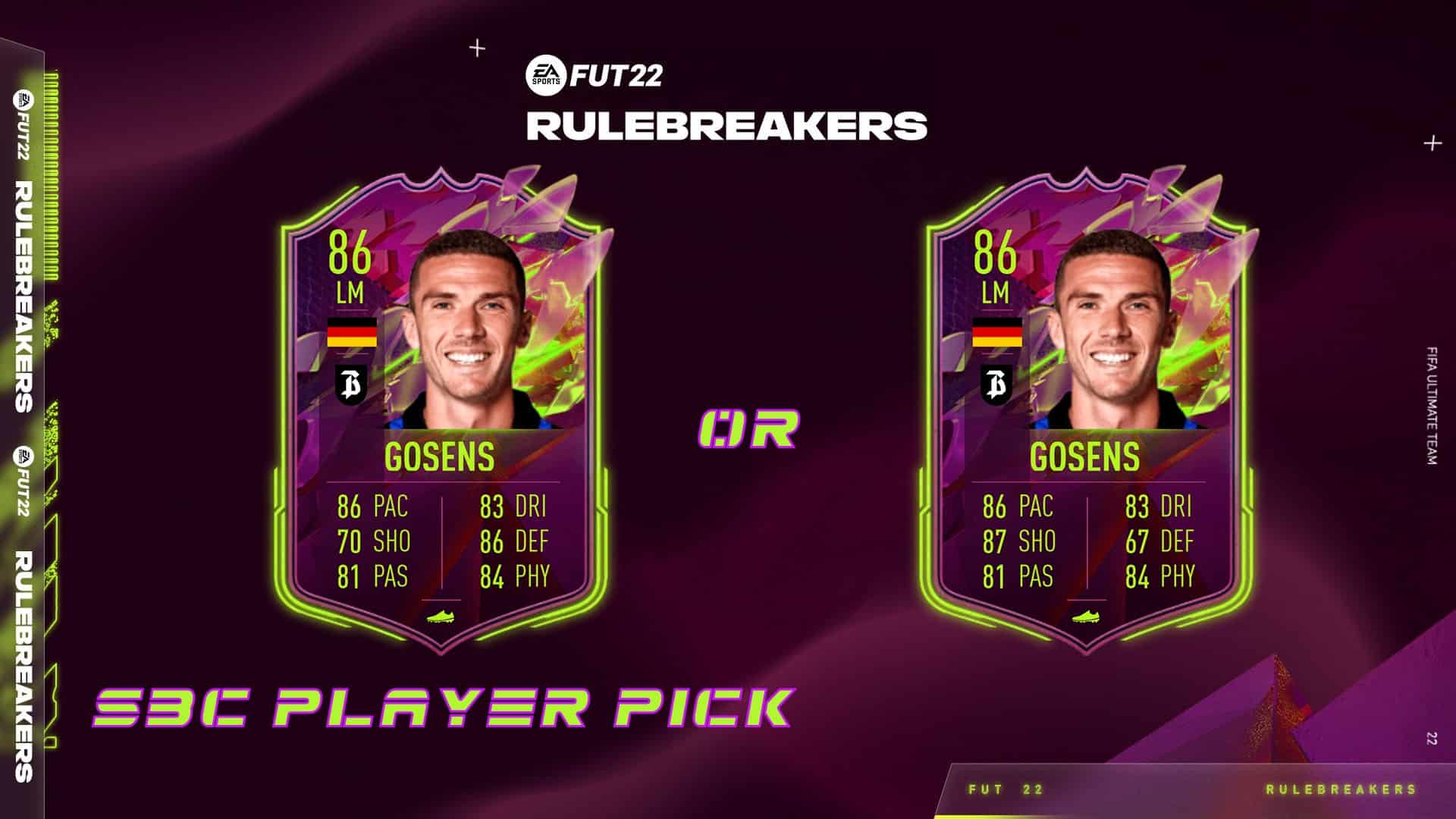 Так, в сравнении с базовой карточкой Госенса в FIFA 22, данная “Rulebreakers” – версия немецкого игрока получила увеличение рейтинга на 3 пункта.